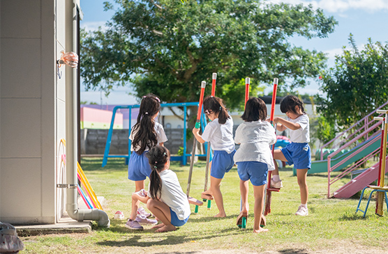 園庭が広々としており、子どもたちがのびのびと遊べる環境を整えています。